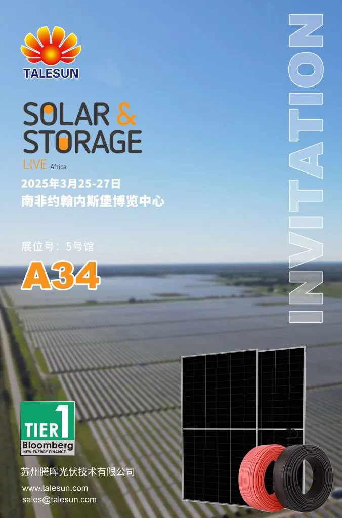 2025南非國際太陽能暨儲能展覽會(Solar & Storage Show Africa)正在約翰內(nèi)斯堡舉行。騰暉光伏誠邀全球能源領(lǐng)域伙伴蒞臨5號館A34展位, 騰暉光伏銷售團(tuán)隊將為您分享公司在多國推動能源轉(zhuǎn)型的實踐成果,探討最新光伏技術(shù)與本地化融合的經(jīng)驗,共同探索非洲市場機(jī)遇。