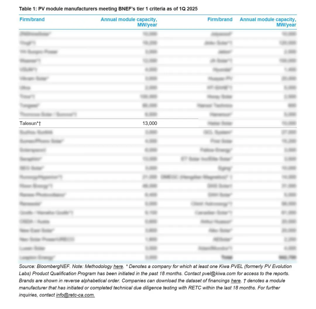 近日,全球知名研究機(jī)構(gòu)彭博新能源財(cái)經(jīng)(BNEF)發(fā)布了2025年第一季度Tier1全球一級(jí)組件制造廠商榜單,騰暉光伏憑借卓越的技術(shù)創(chuàng)新能力、穩(wěn)健的財(cái)務(wù)表現(xiàn)及全球市場(chǎng)影響力成功入選該榜單。