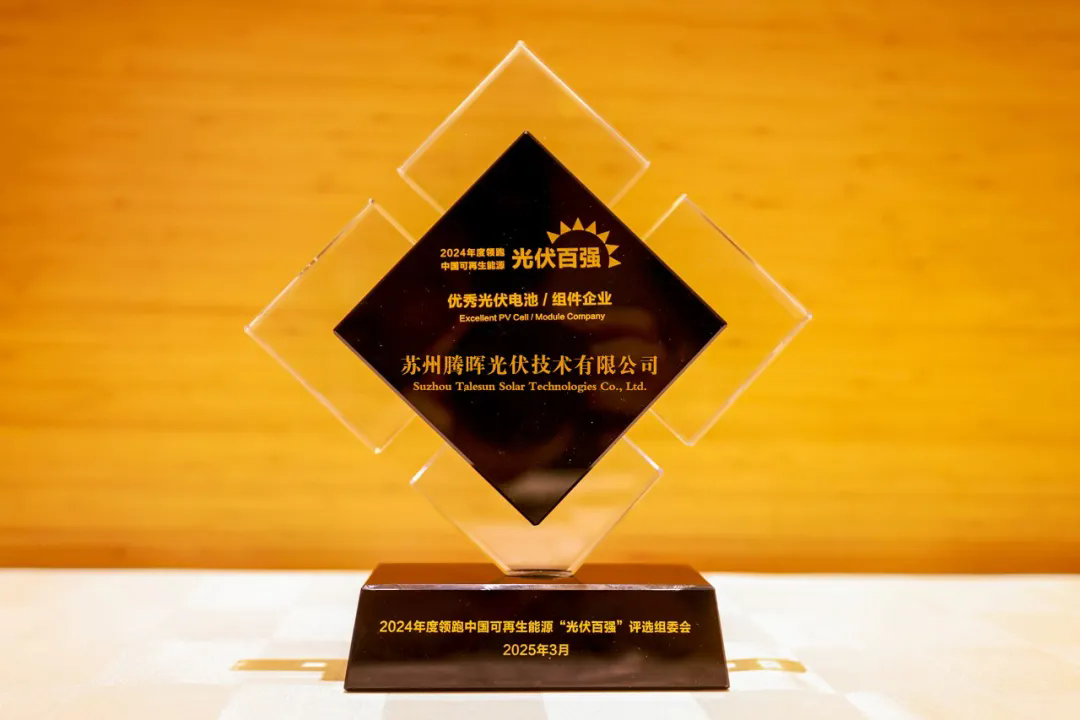 近日,由江蘇省可再生能源行業(yè)協(xié)會主辦的”第十二屆中國(江蘇)國際新型光伏創(chuàng)新發(fā)展大會”在南京隆重召開。蘇州騰暉光伏技術(shù)有限公司(簡稱”騰暉光伏”)作為新能源領(lǐng)域領(lǐng)軍企業(yè)之一受邀出席,并憑借卓越的技術(shù)創(chuàng)新實力榮獲”2024年度領(lǐng)跑中國可再生能源優(yōu)秀光伏電池/組件企業(yè)”稱號。本次大會匯聚政府主管部門、行業(yè)協(xié)會、科研機構(gòu)及產(chǎn)業(yè)鏈上下游企業(yè)代表400余人,圍繞光伏技術(shù)前沿突破、市場趨勢研判、政策導(dǎo)向解讀等核心議題展開深度對話,共繪產(chǎn)業(yè)高質(zhì)量發(fā)展藍圖。